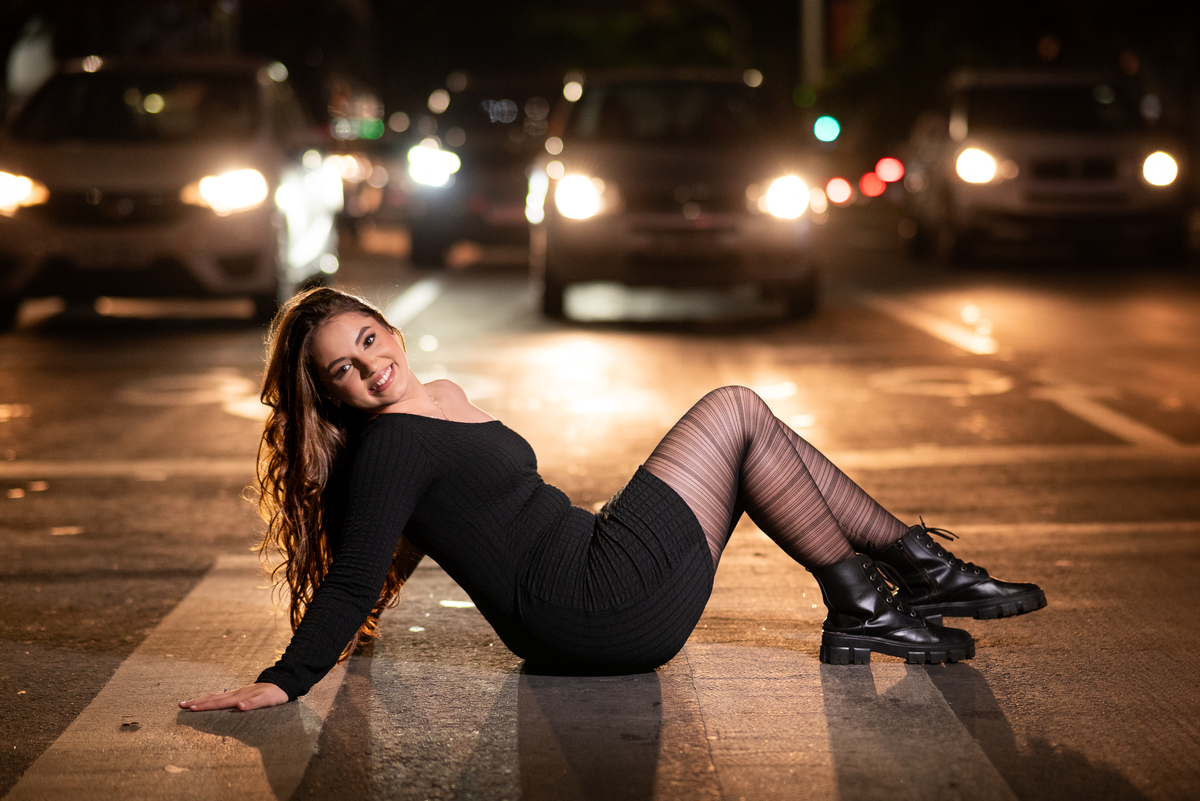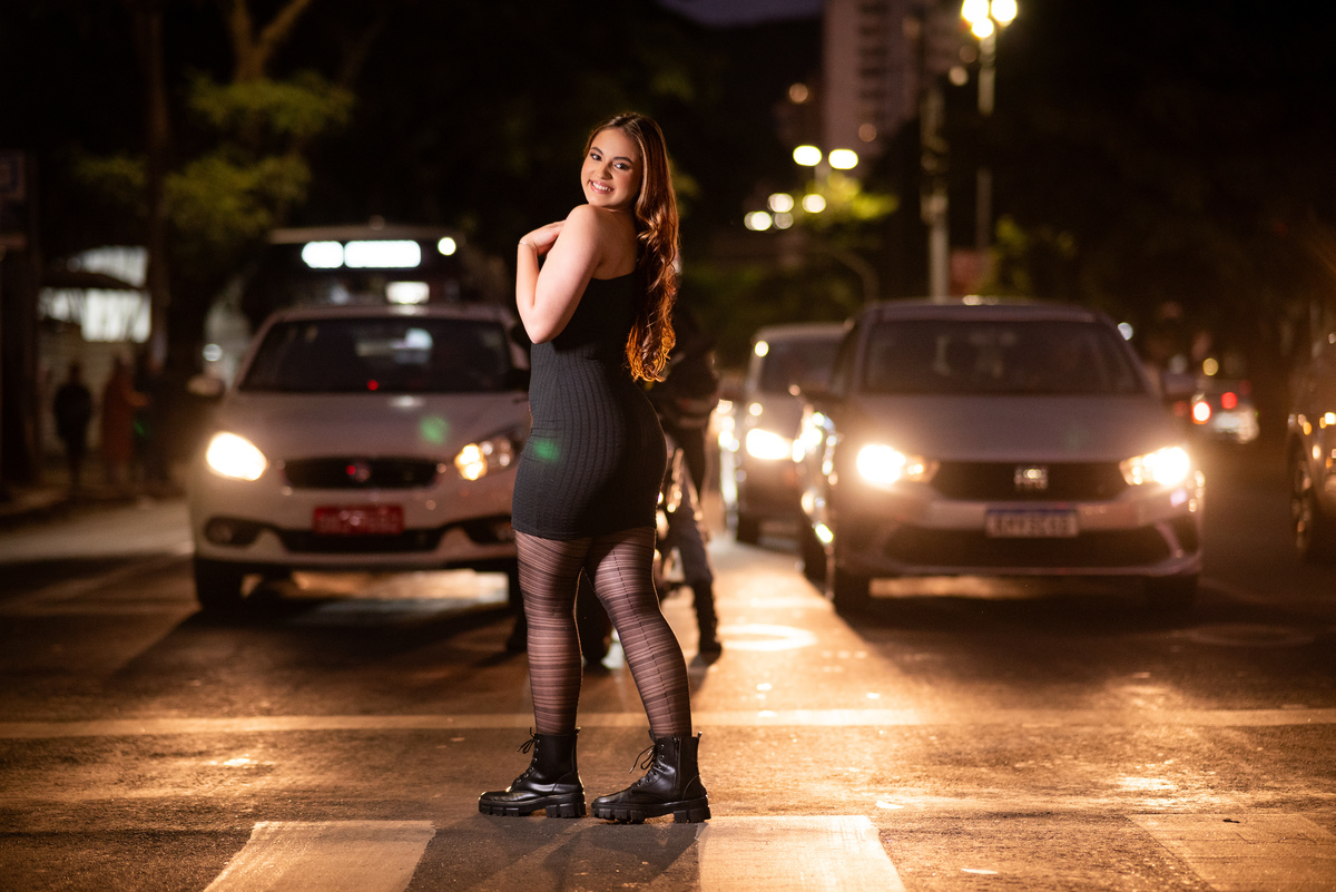 Para finalizar o ensaio com um toque de personalidade e estilo, exploramos um ambiente mais urbano, com muros de concreto, texturas modernas e luzes da cidade ao fundo. Essa transição do natural para o urbano refletiu perfeitamente o estilo da Bárbara: delicada, mas também cheia de atitude.