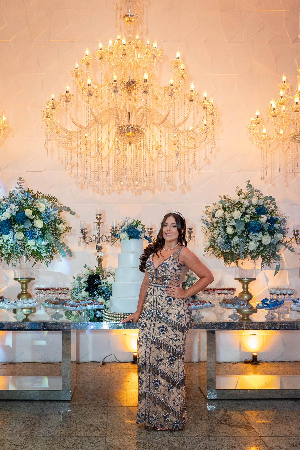 O salão do Algarve Eventos ganhou um toque mágico com uma decoração impecável, que combinou delicadeza, elegância e personalidade. Cada detalhe refletia o estilo único da Ana Luiz, criando um ambiente perfeito para fotos espontâneas, retratos cheios de sentimento e registros que traduzem a essência da celebração.