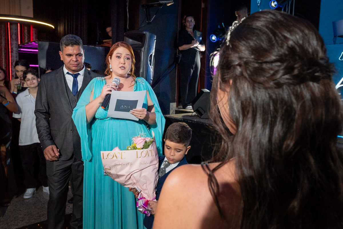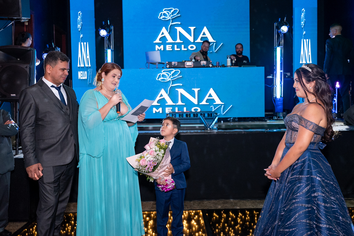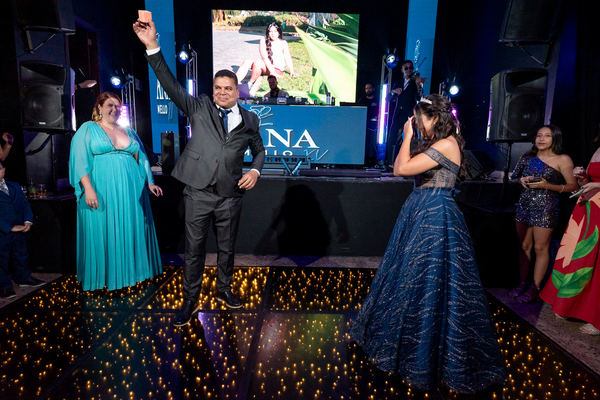 A entrada da debutante foi um dos momentos mais emocionantes da noite. Com um sorriso radiante e brilho nos olhos, Ana Luiz encantou a todos enquanto vivia intensamente cada segundo. As homenagens, a valsa e a interação com os convidados tornaram o evento ainda mais especial, proporcionando momentos de alegria genuína e muita emoção.