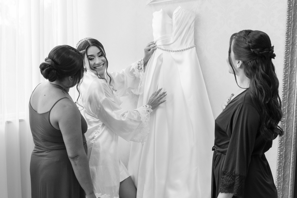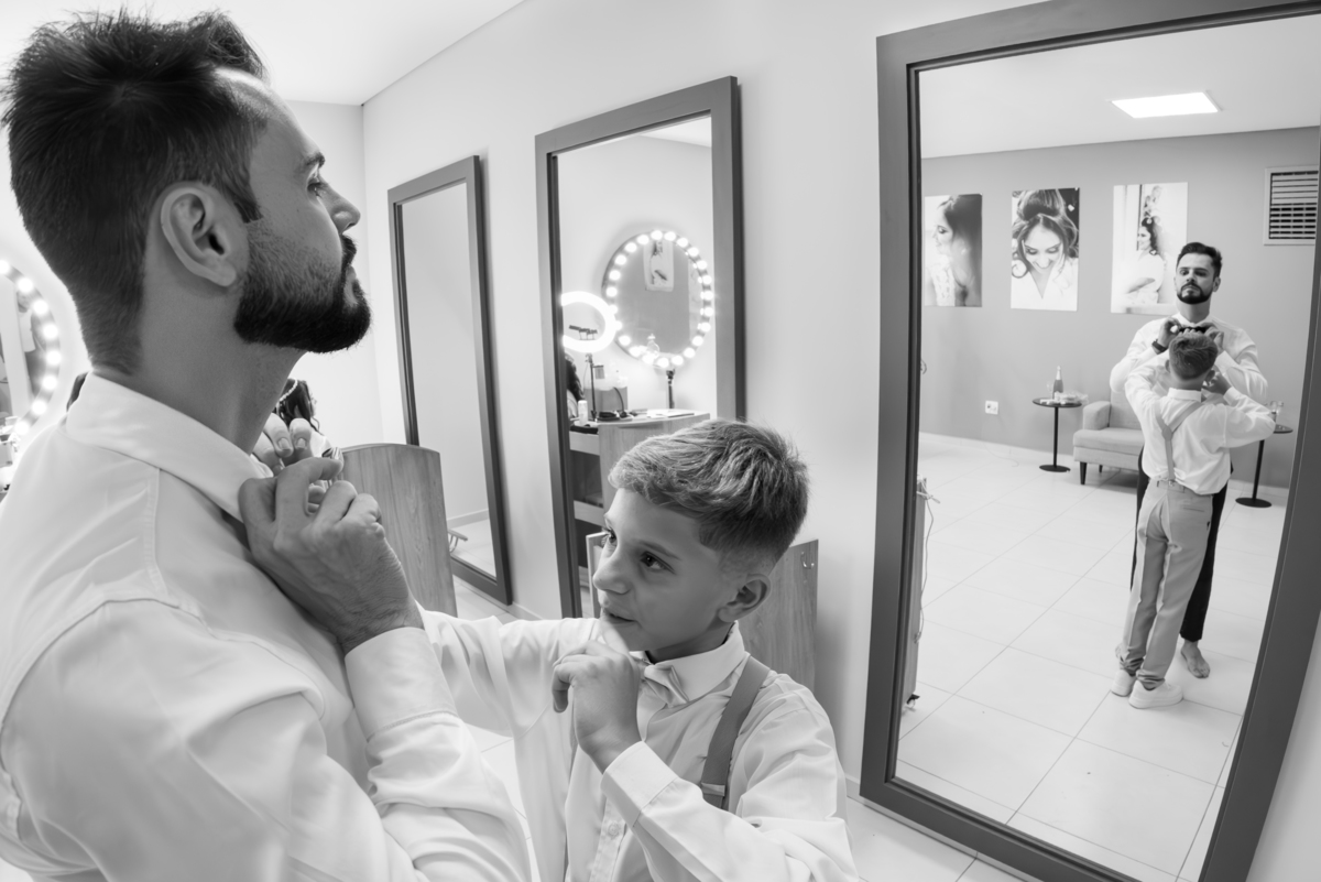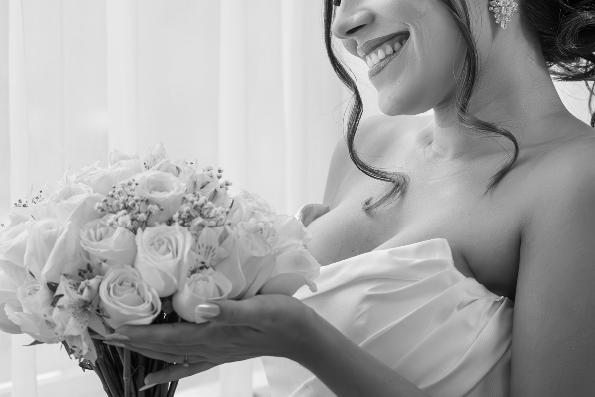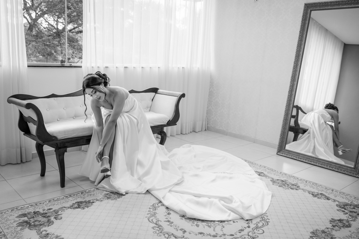 O dia começou com o making of da noiva, em um ambiente leve, cheio de risadas, carinho e expectativa. Janaína estava radiante enquanto se preparava ao lado das madrinhas e familiares. Cada detalhe do vestido, da maquiagem e dos acessórios foi cuidadosamente registrado, criando memórias preciosas desse momento tão íntimo.