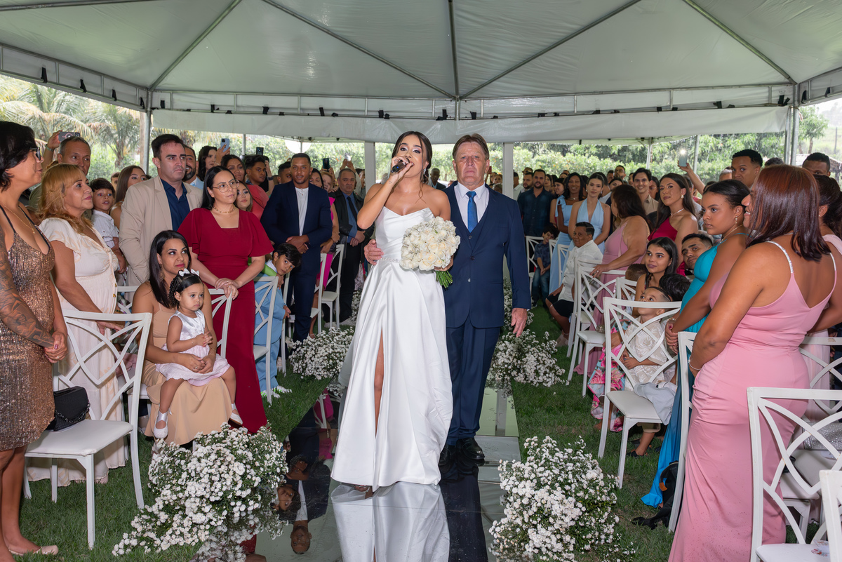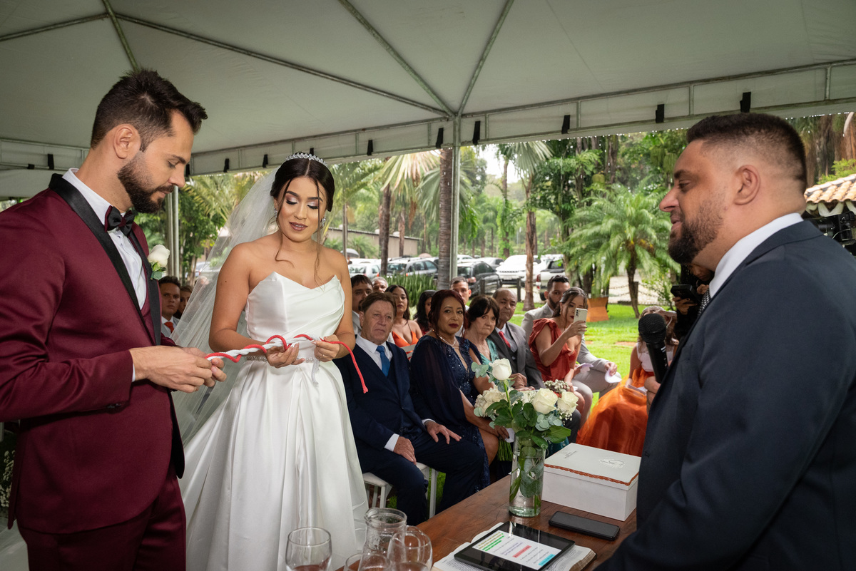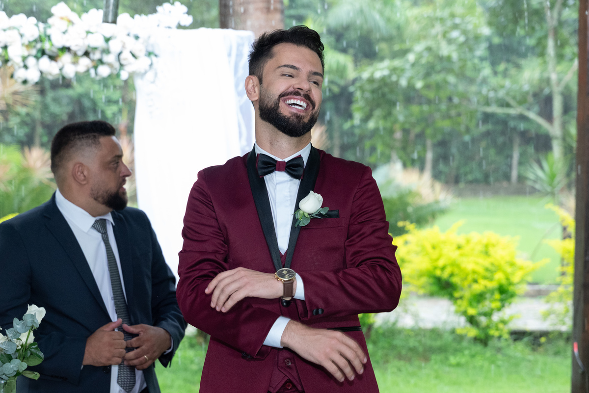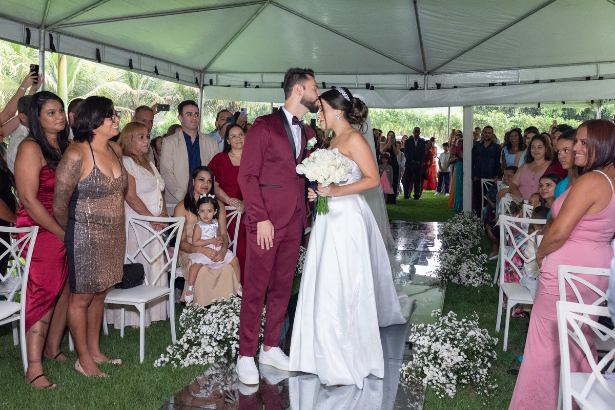 A cerimônia de casamento foi marcada por um cenário surpreendente: uma chuva intensa que, longe de atrapalhar, trouxe ainda mais emoção ao momento. Os convidados acompanharam os votos sinceros e apaixonados de Janaína e Gladston. Foi um daqueles momentos em que a natureza parece fazer parte da história — e nós estávamos lá para eternizar cada olhar, cada sorriso e cada gesto de carinho.