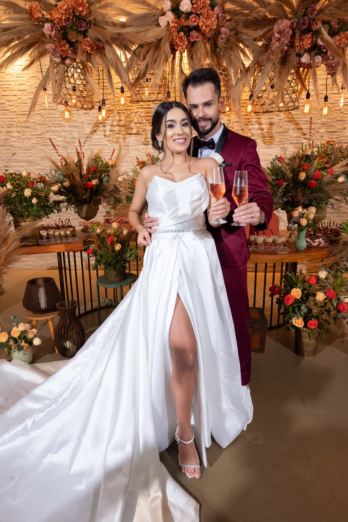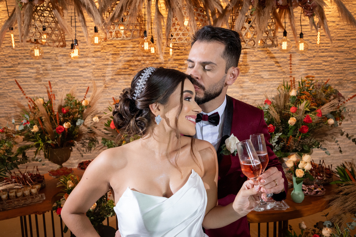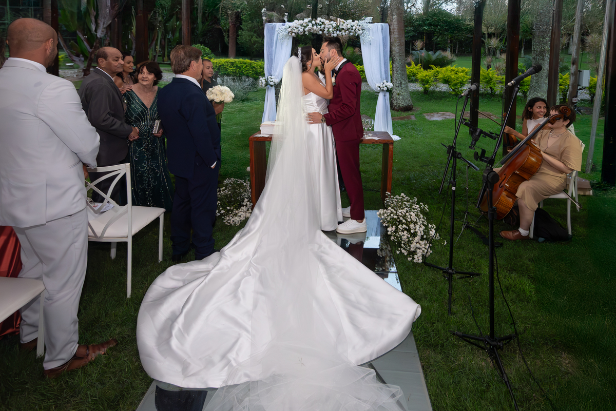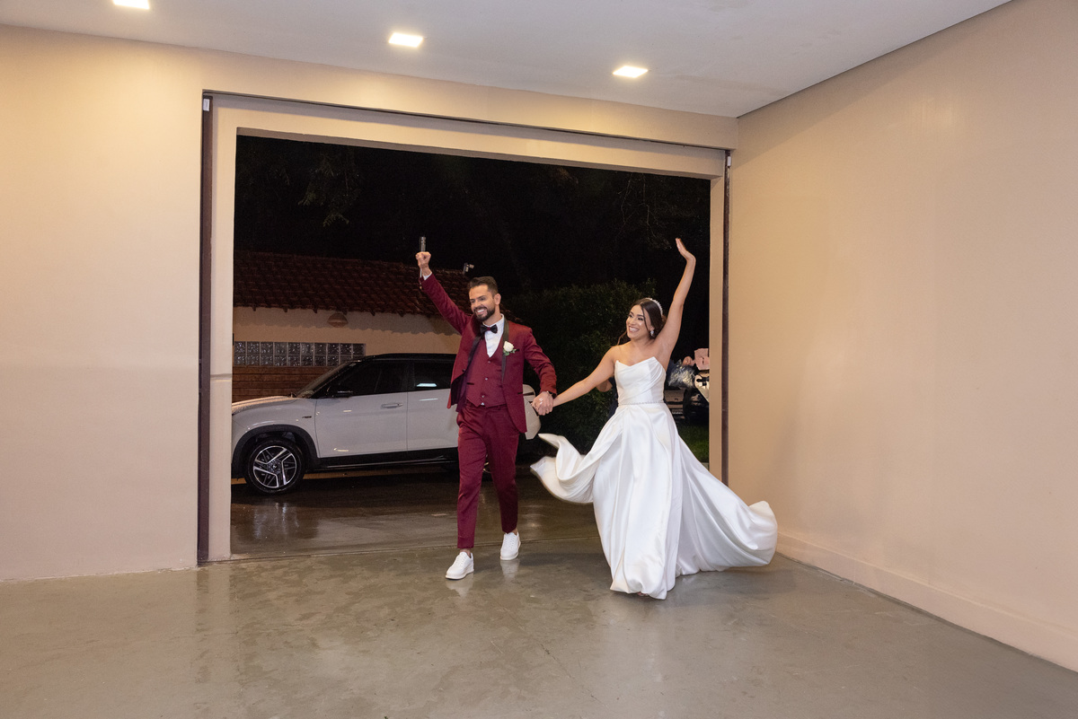 Já a recepção do casamento foi pura alegria! A chuva deu lugar a uma noite de celebração intensa. Os noivos, cercados por amigos e familiares, aproveitaram cada segundo da festa. A pista de dança ficou cheia do início ao fim, com abraços calorosos, músicas animadas e muita emoção no ar.