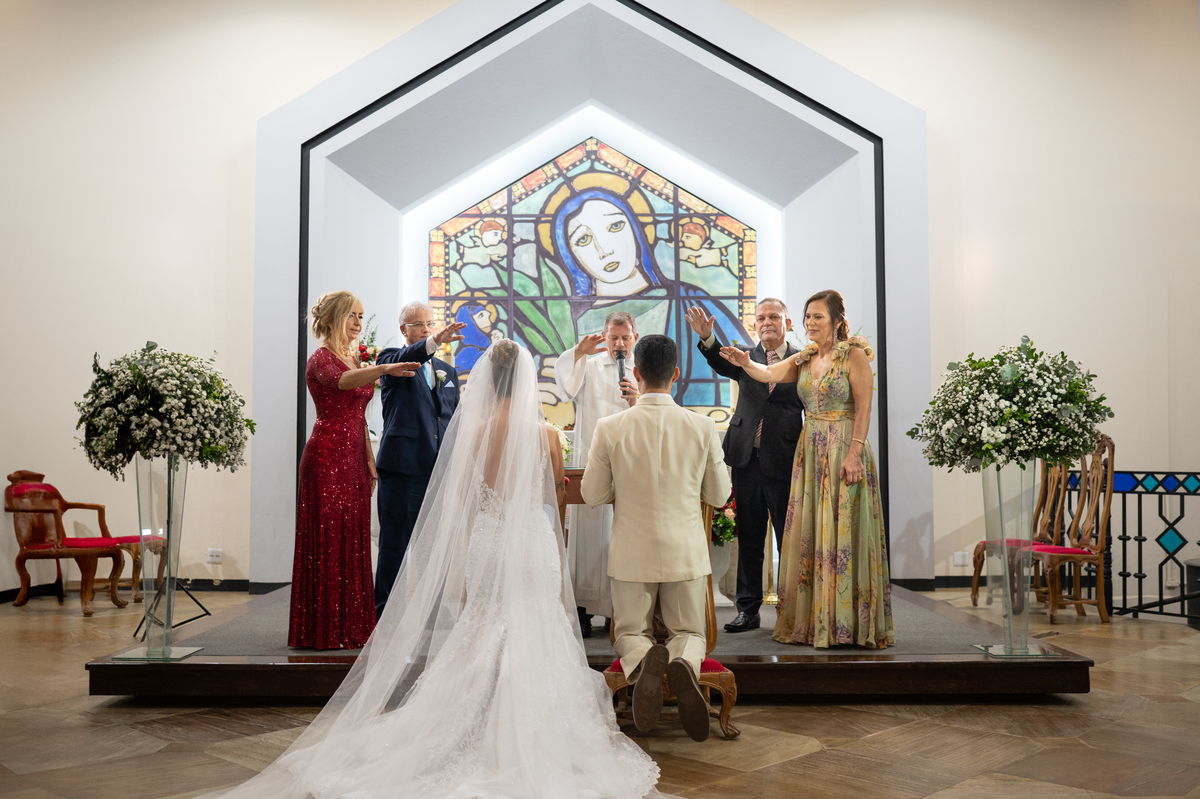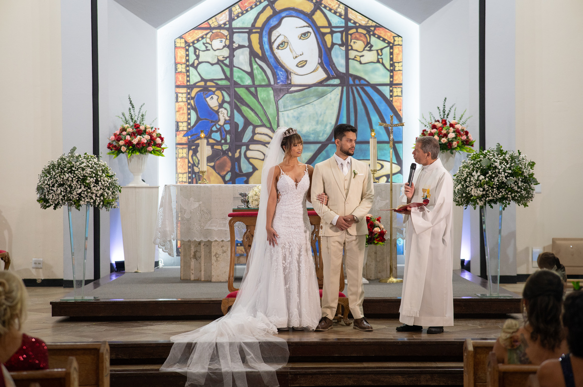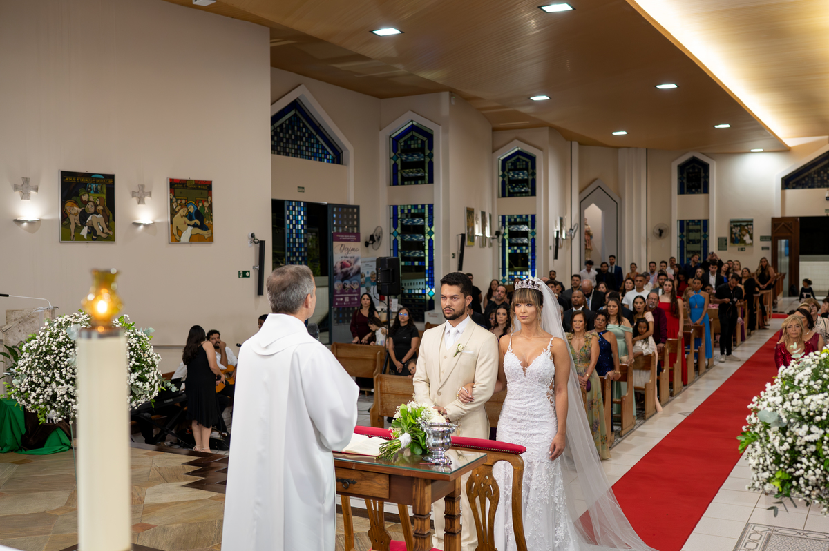 A cerimônia aconteceu na belíssima Igreja Santa Luzia, no bairro Cidade Nova. Com sua arquitetura clássica e atmosfera acolhedora, o local foi o cenário ideal para o “sim” de Juliana e Túlio. As fotos revelam não apenas a beleza do lugar, mas a emoção verdadeira estampada no rosto dos noivos, dos pais, e de todos que testemunharam esse momento sagrado.
