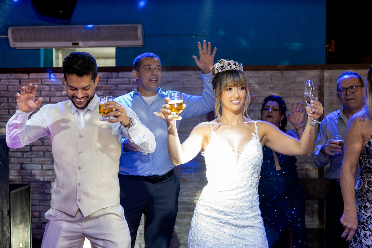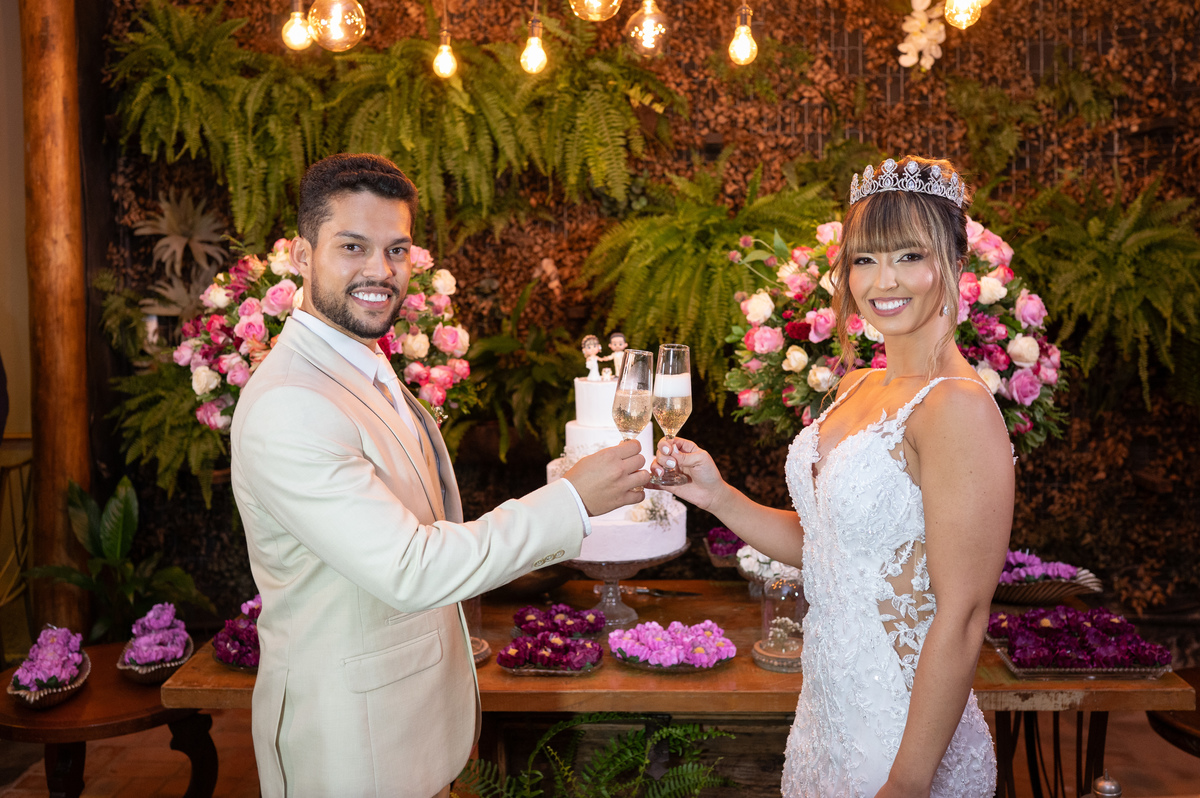 Depois da cerimônia, os convidados foram recepcionados com muito estilo no Espaço Incasa, também em Belo Horizonte. O ambiente estava deslumbrante: iluminação intimista, decoração sofisticada e uma energia contagiante. Cada cantinho foi pensado para celebrar o amor – e cada clique contou essa história de forma única.