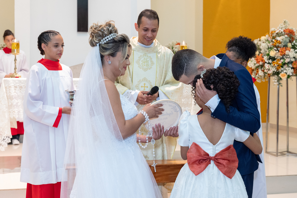 A cerimônia aconteceu em um cenário encantador, com uma decoração delicada e um clima de amor no ar. O olhar emocionado do João ao ver a Leydi entrando, os abraços apertados e a alegria contagiante dos convidados fizeram desse dia um verdadeiro sonho realizado.