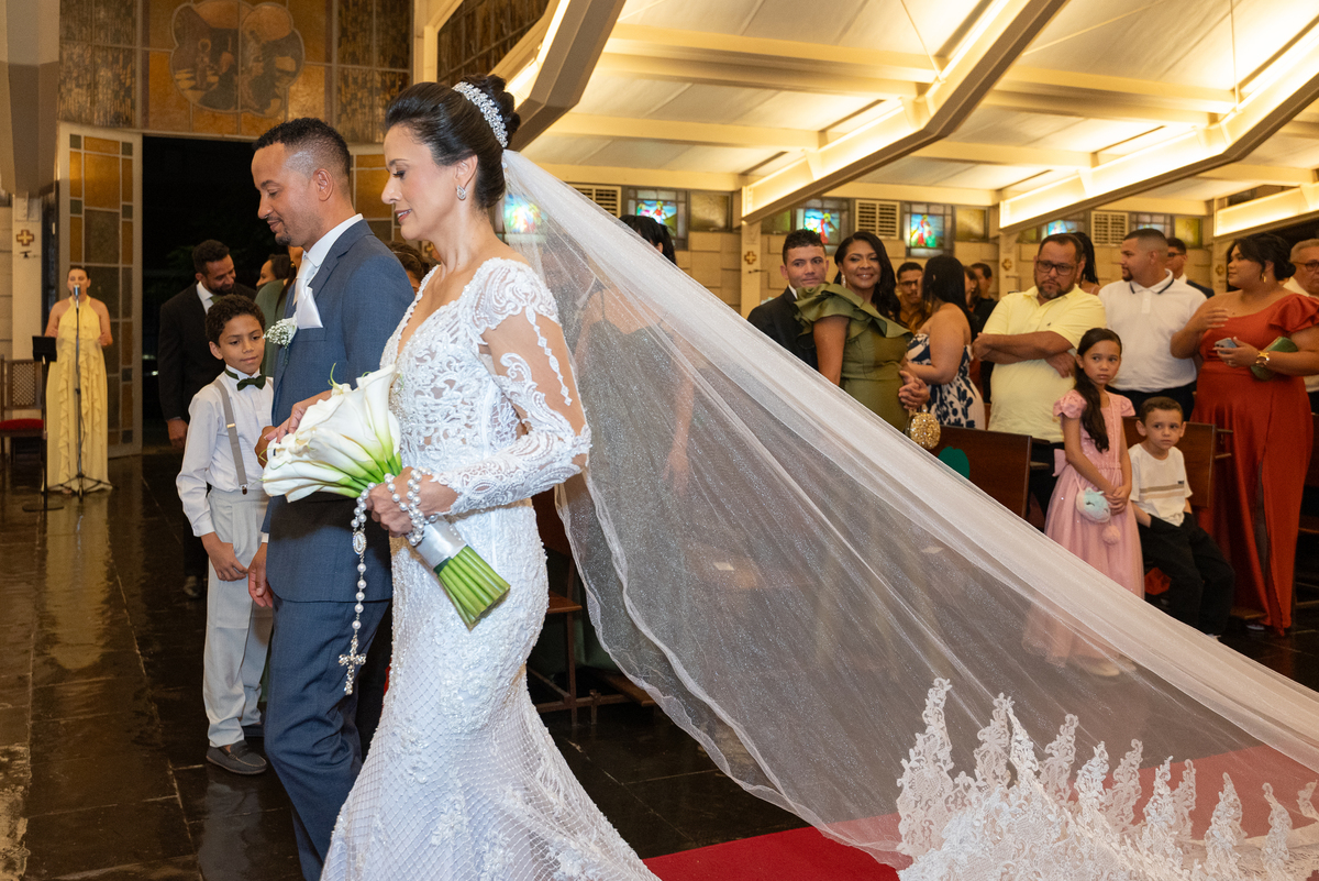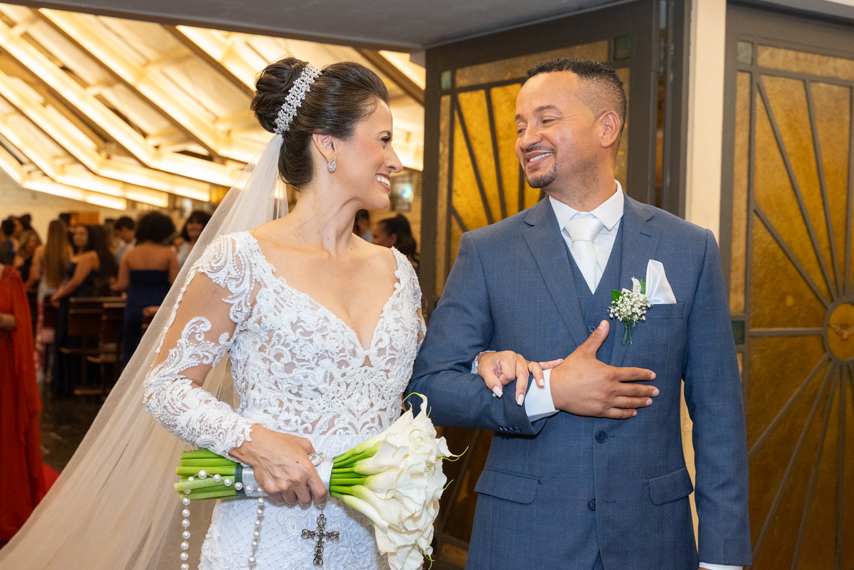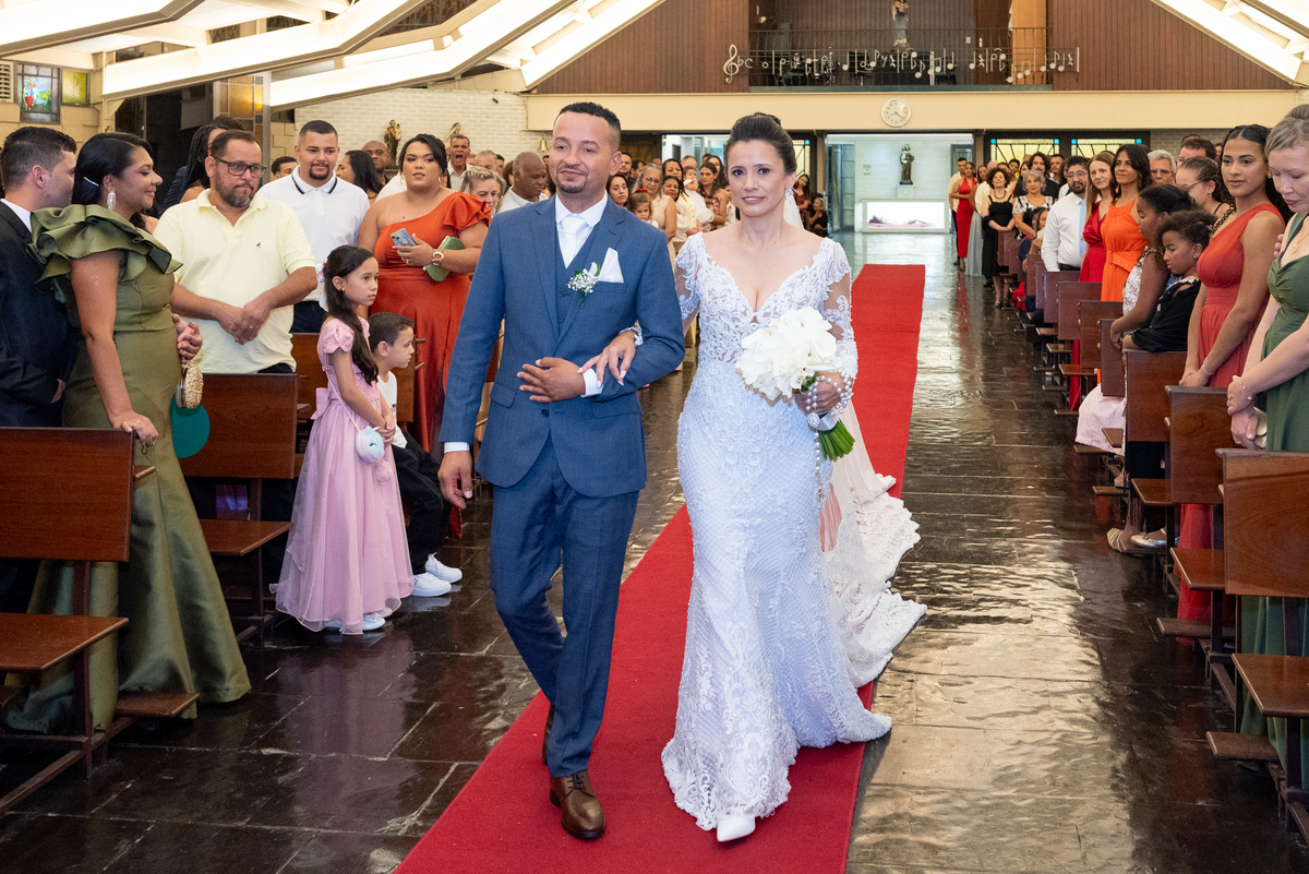 A entrada da noiva foi um dos momentos mais marcantes do casamento. Regina entrou radiante, emocionando a todos os convidados. Renato aguardava no altar com um sorriso sincero, mostrando a felicidade de viver aquele instante tão especial.
