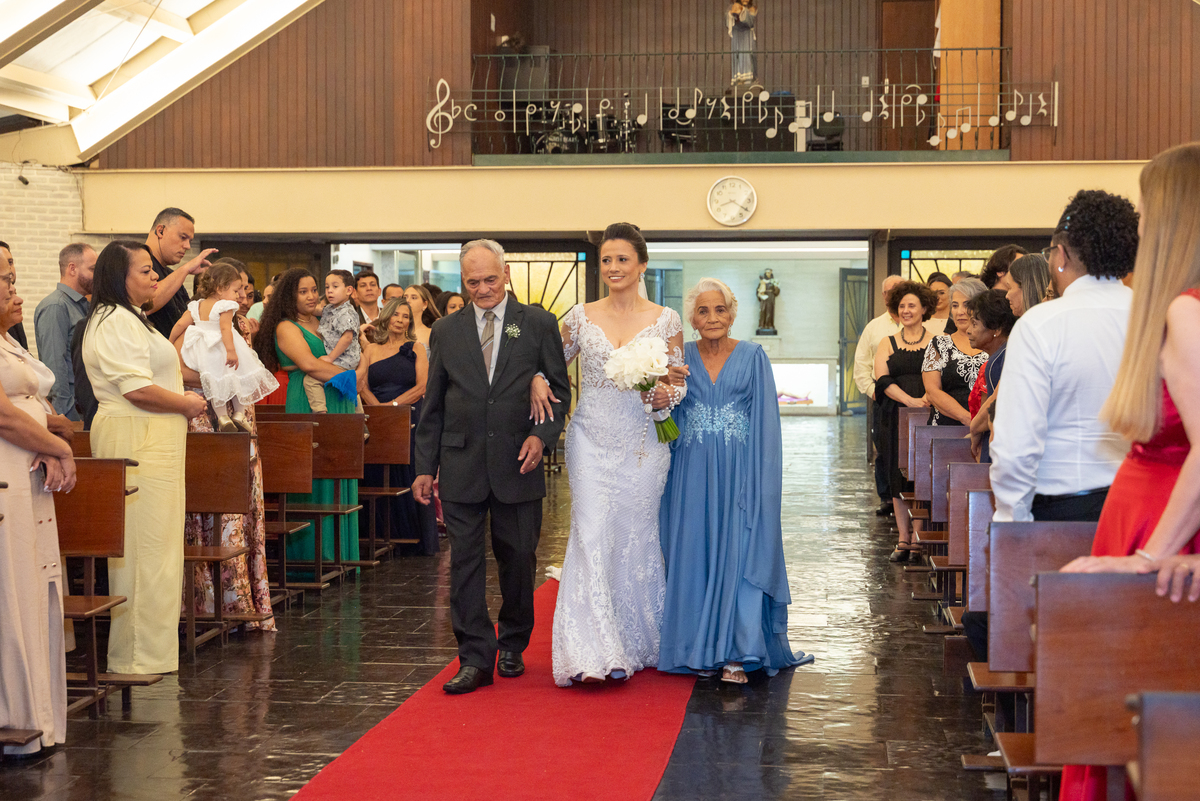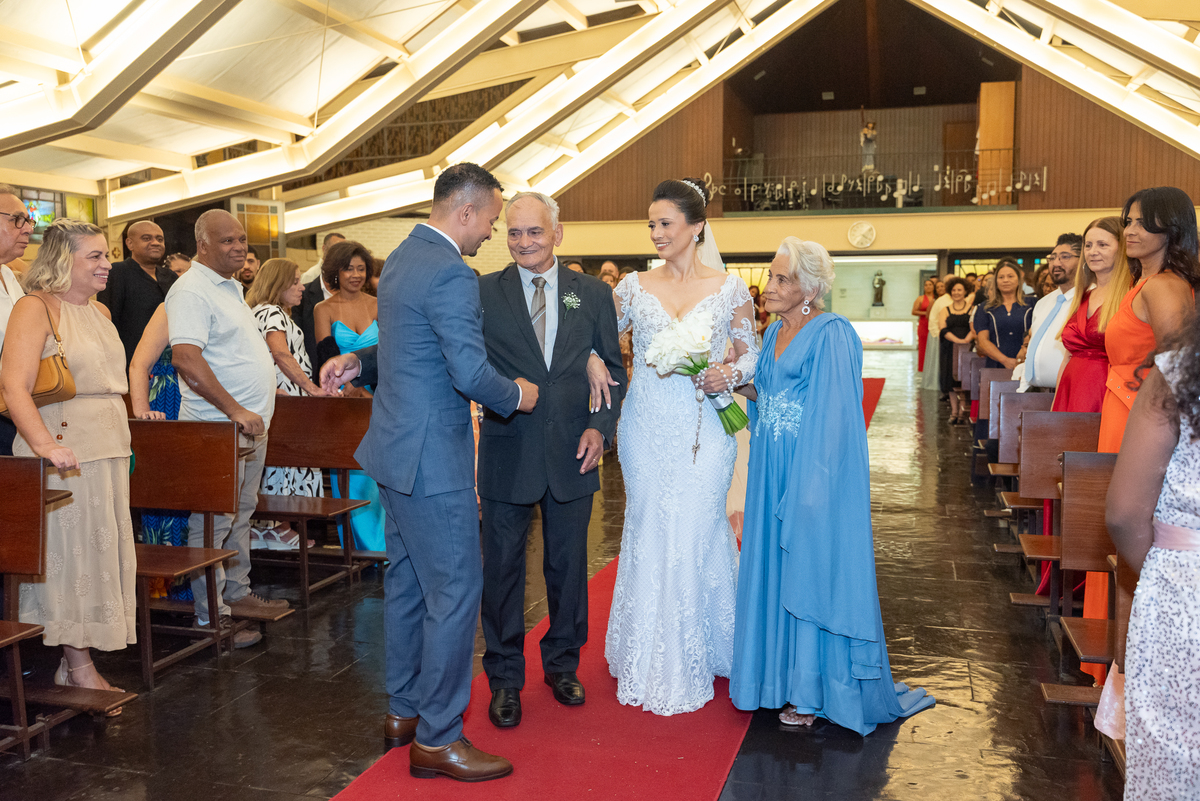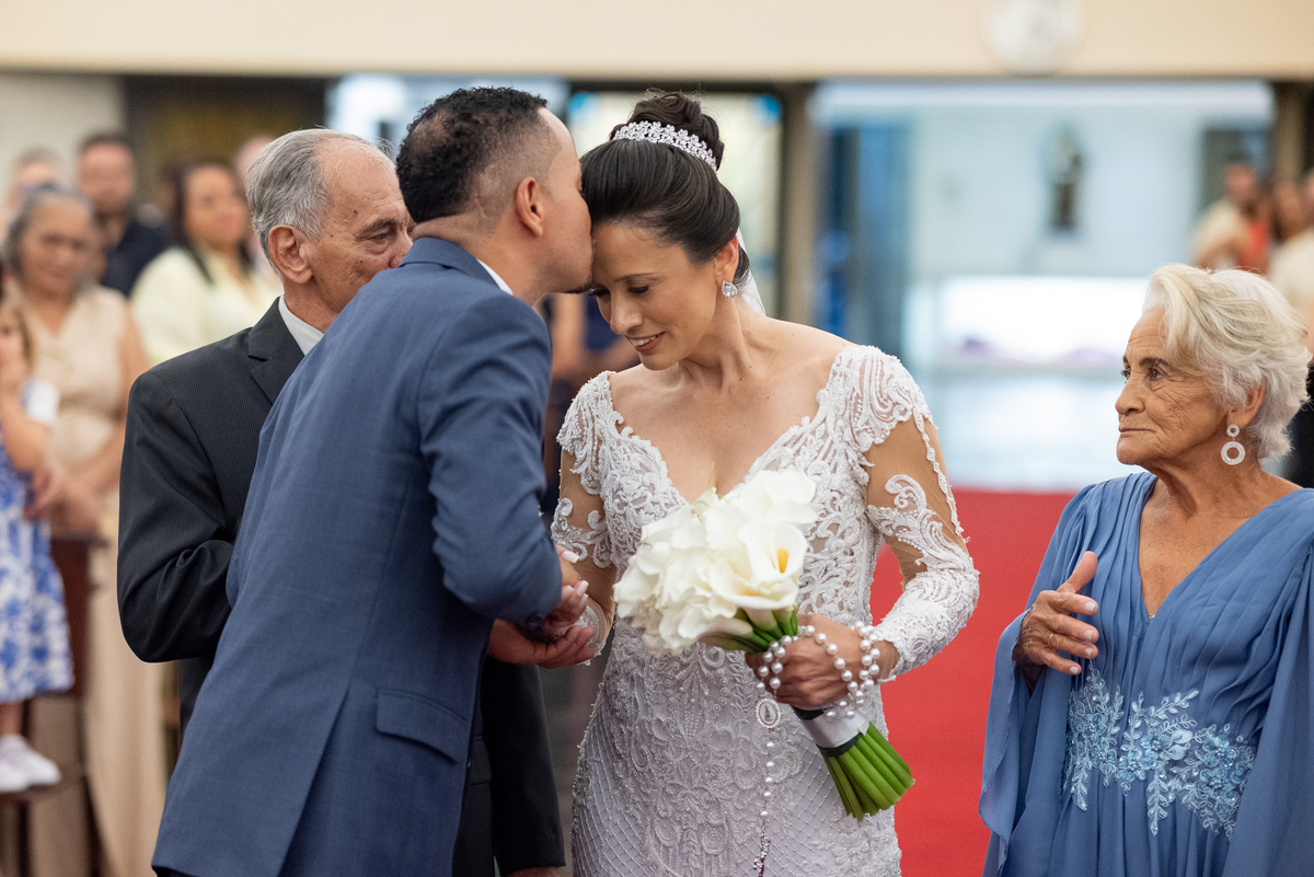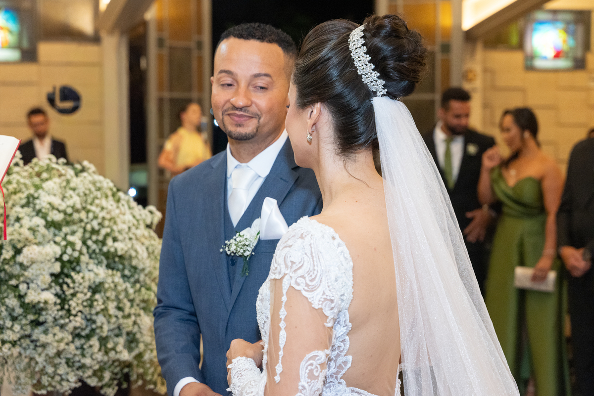 A entrada da noiva foi um dos momentos mais marcantes do casamento. Regina entrou radiante, emocionando a todos os convidados. Renato aguardava no altar com um sorriso sincero, mostrando a felicidade de viver aquele instante tão especial.