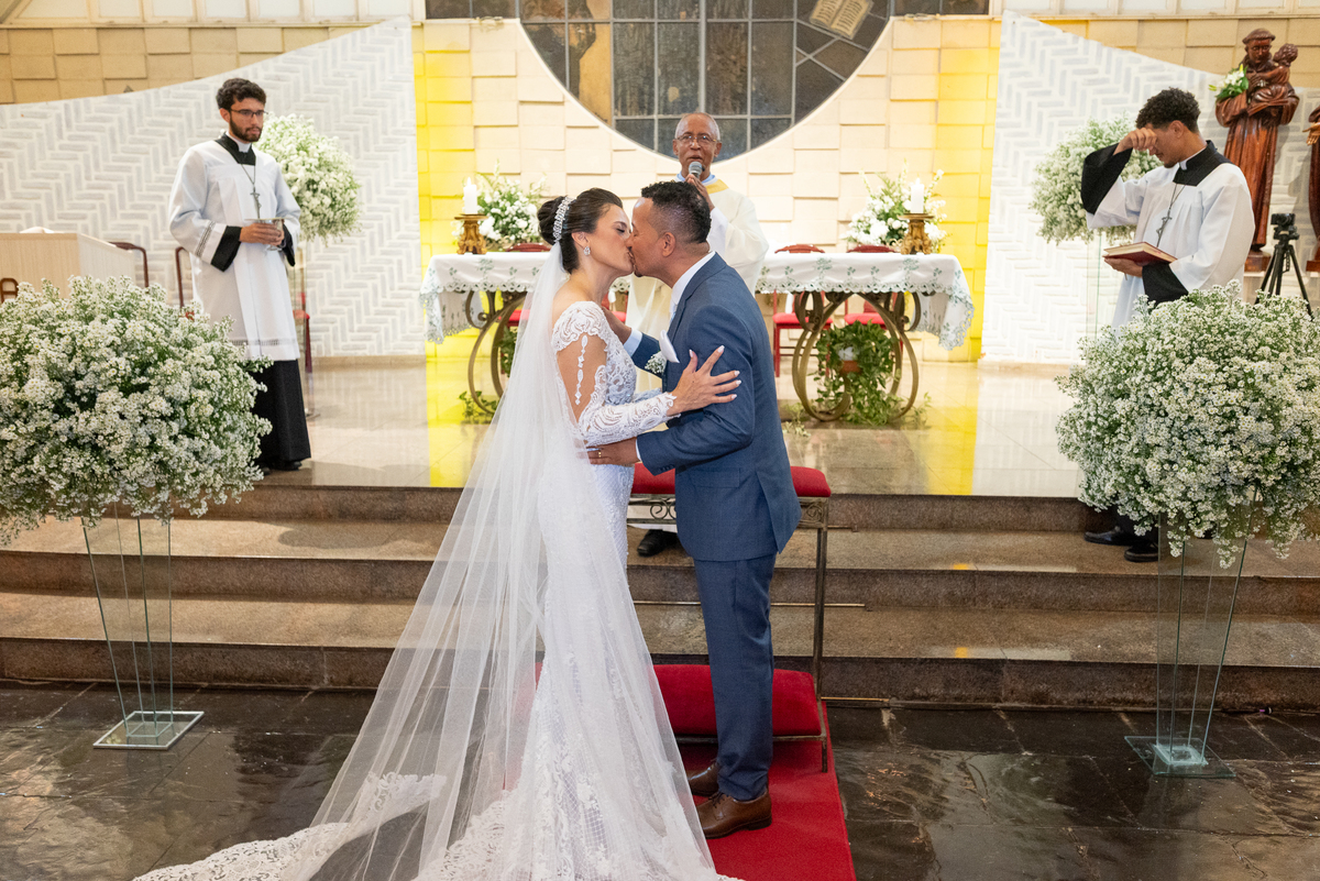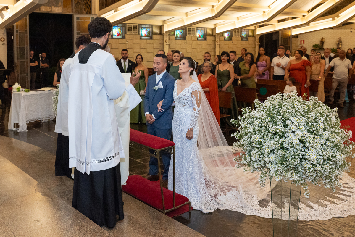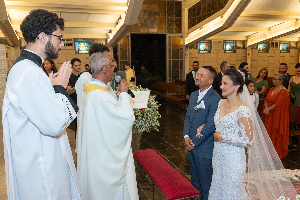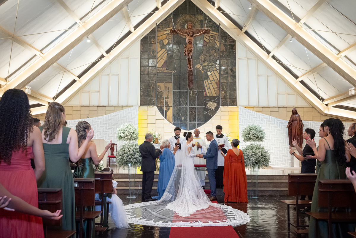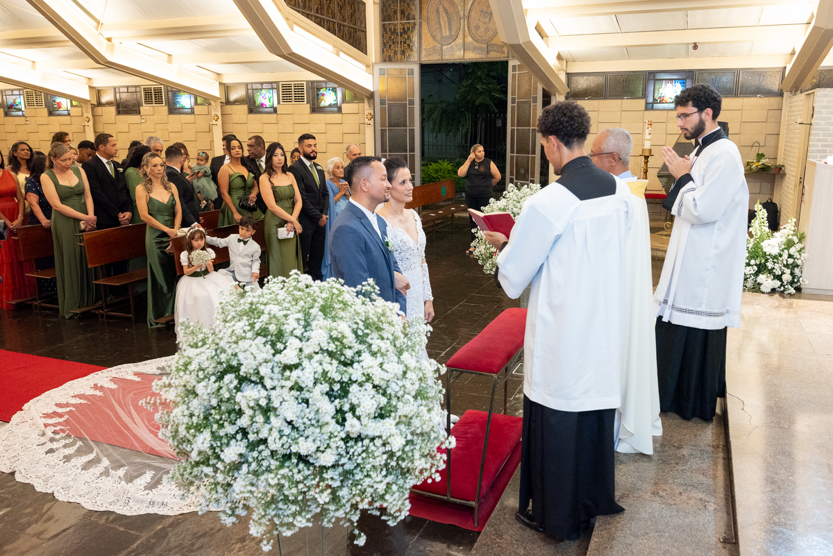 Fotografar a cerimônia na Igreja Santo Antônio da Pampulha é sempre uma experiência única. A luz natural, a beleza interna da igreja e toda a emoção envolvida criam imagens que expressam perfeitamente a essência do casamento.