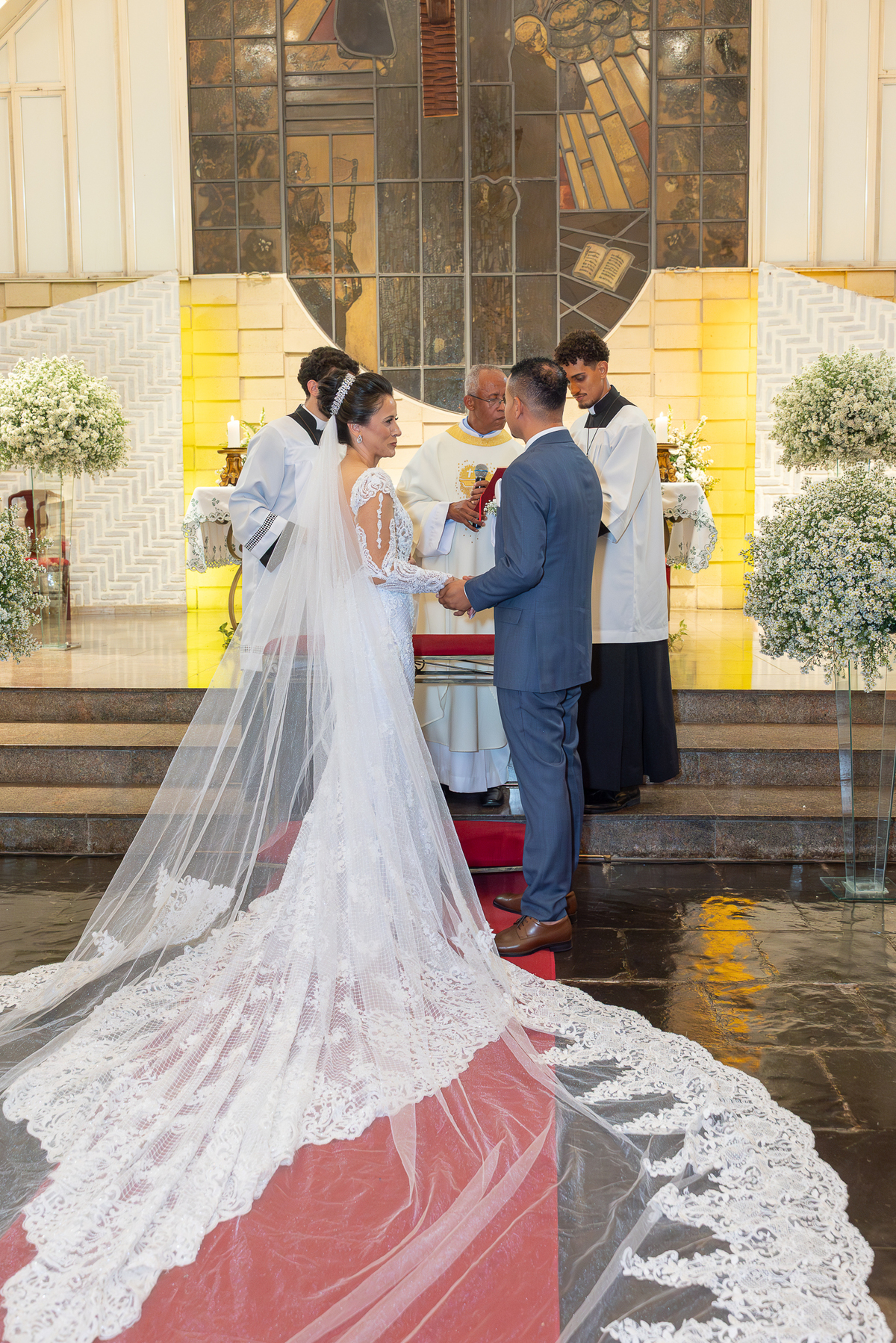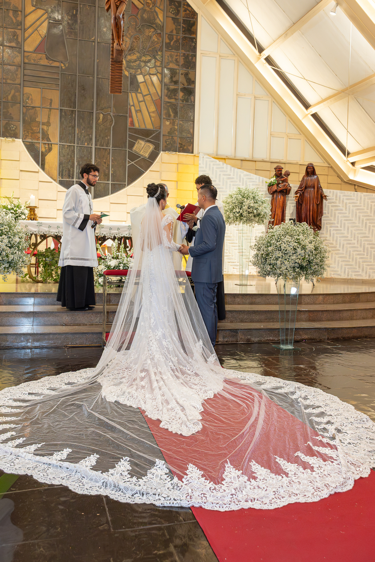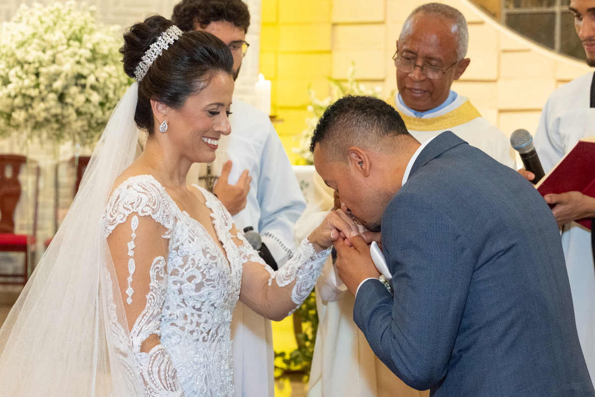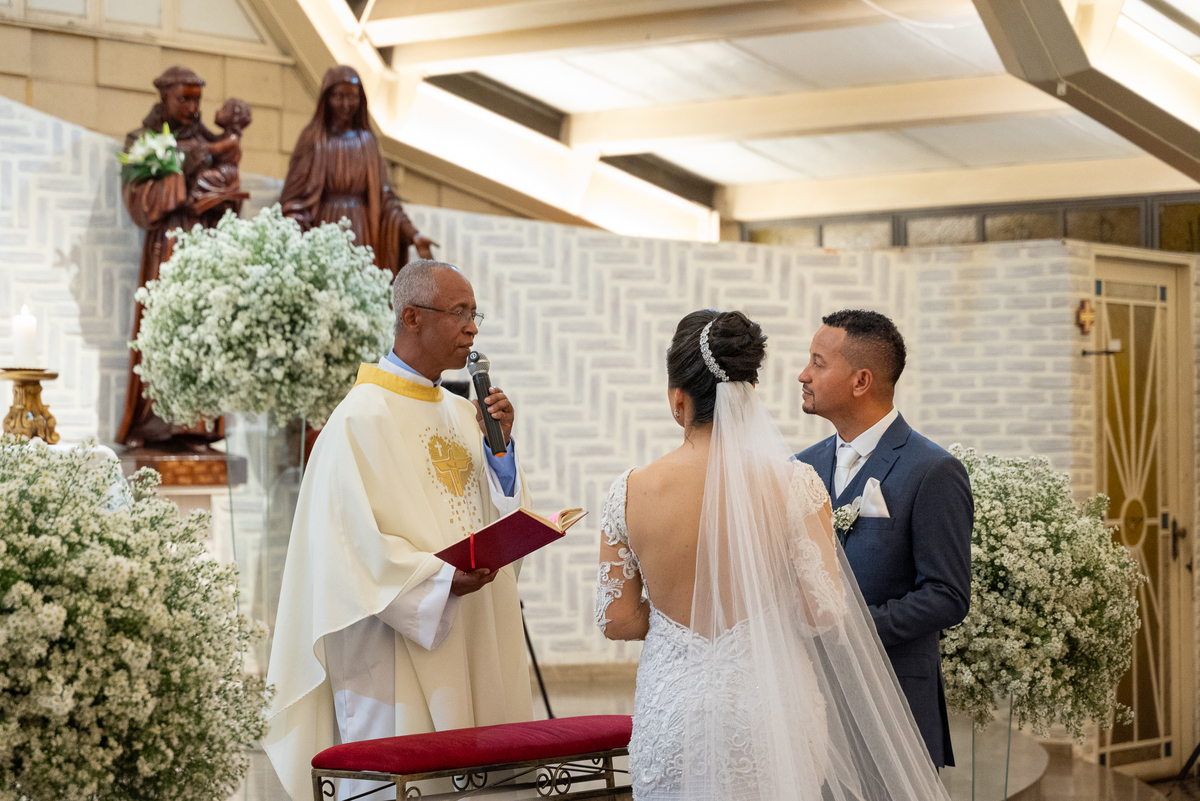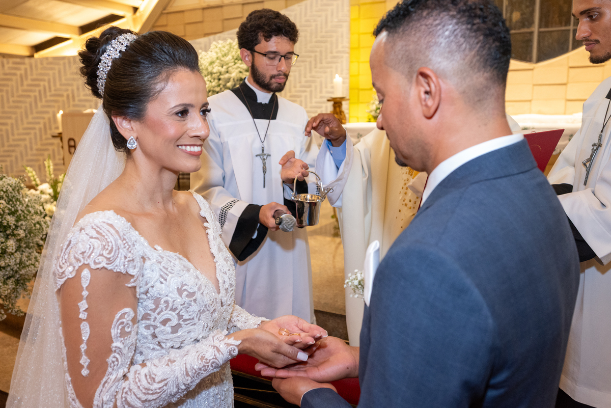 Fotografar a cerimônia na Igreja Santo Antônio da Pampulha é sempre uma experiência única. A luz natural, a beleza interna da igreja e toda a emoção envolvida criam imagens que expressam perfeitamente a essência do casamento.