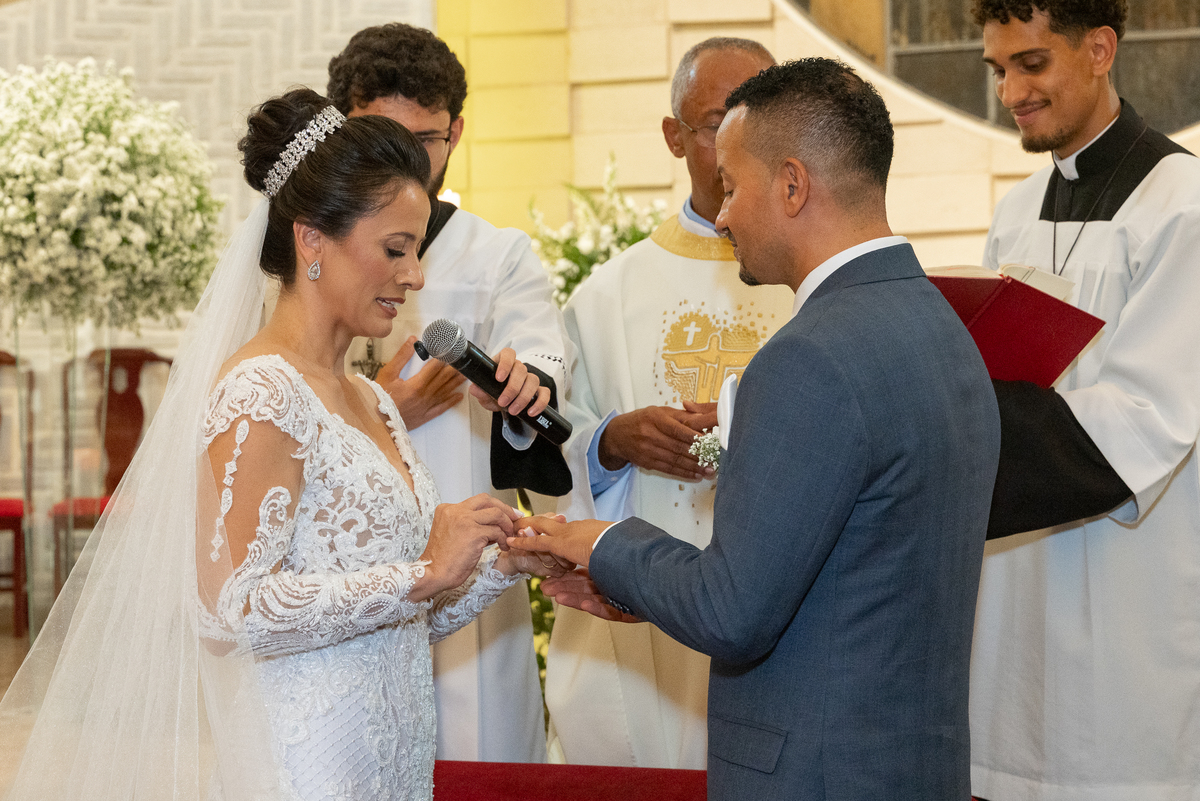 Os votos, cheios de verdade e carinho, tornaram a cerimônia ainda mais significativa para o casal e para todas as pessoas presentes.