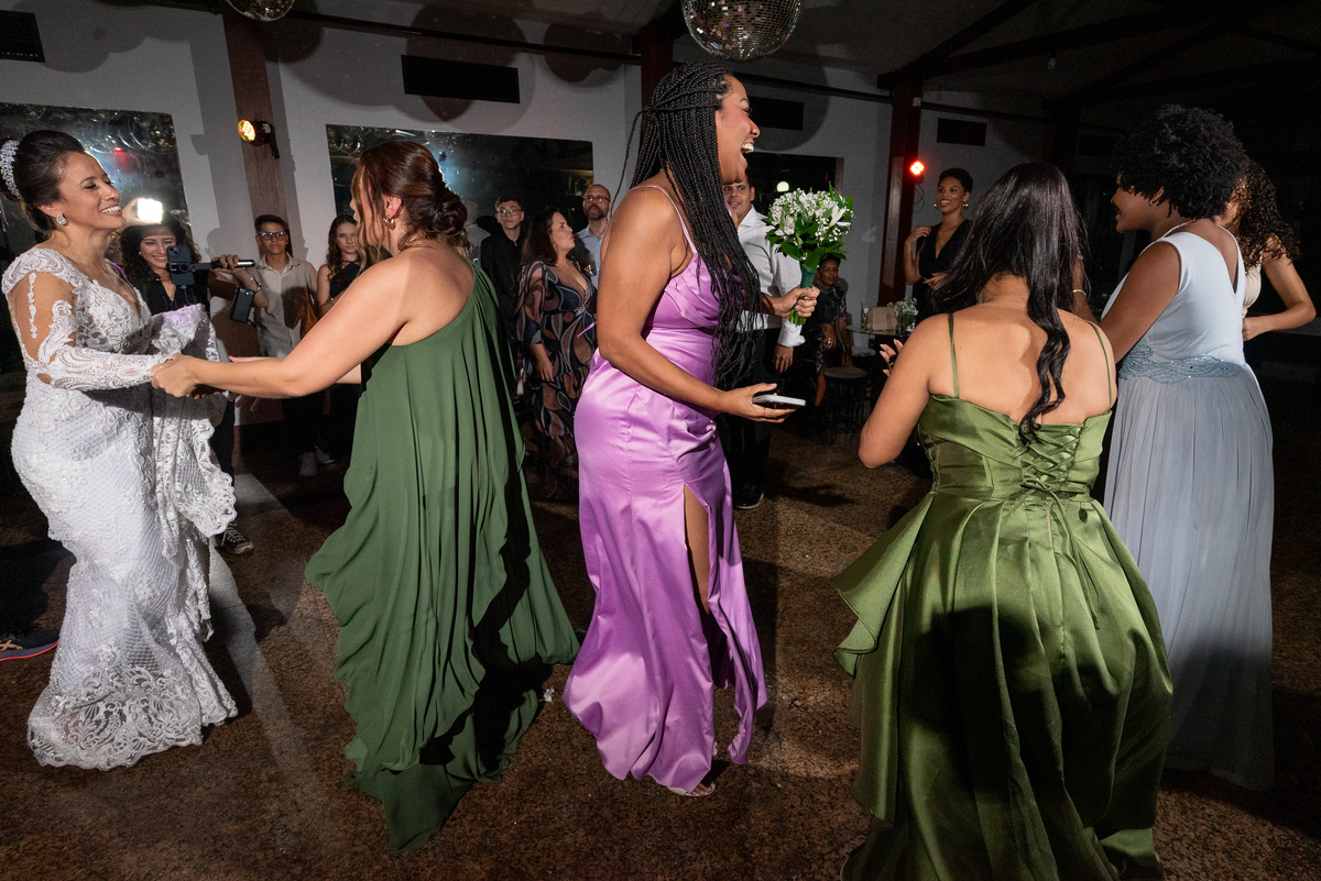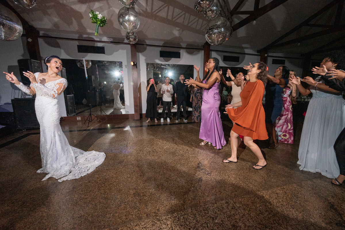 A recepção foi marcada por muita alegria, dança e celebração. A decoração impecável, a pista animada e a energia contagiante dos noivos transformaram a noite em uma festa inesquecível.