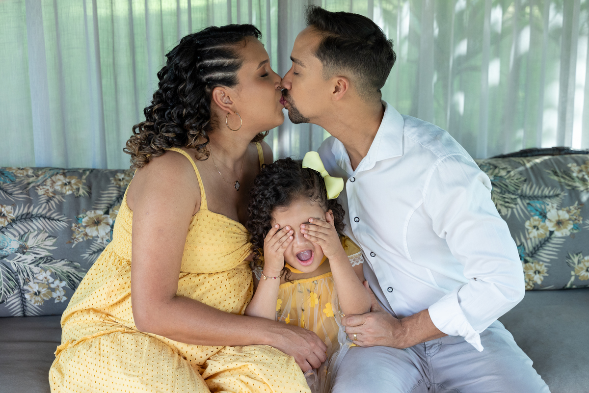 Entre sorrisos e gestos de carinho, a presença da filhinha Elena trouxe ainda mais doçura ao ensaio. Cheia de alegria e curiosidade, ela participou de cada momento, celebrando com os pais a chegada do irmãozinho. Suas risadas e abraços tornaram as fotos ainda mais espontâneas e cheias de vida — um retrato perfeito de amor familiar.