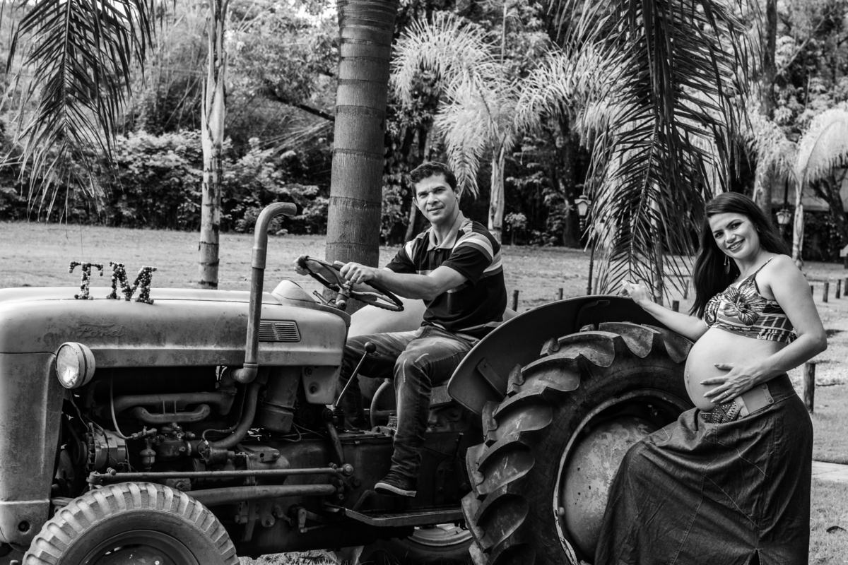 Casal gestante, ele no trator e ela por traz foto de juca sousa tirada na fazenda arraial velho em sabara