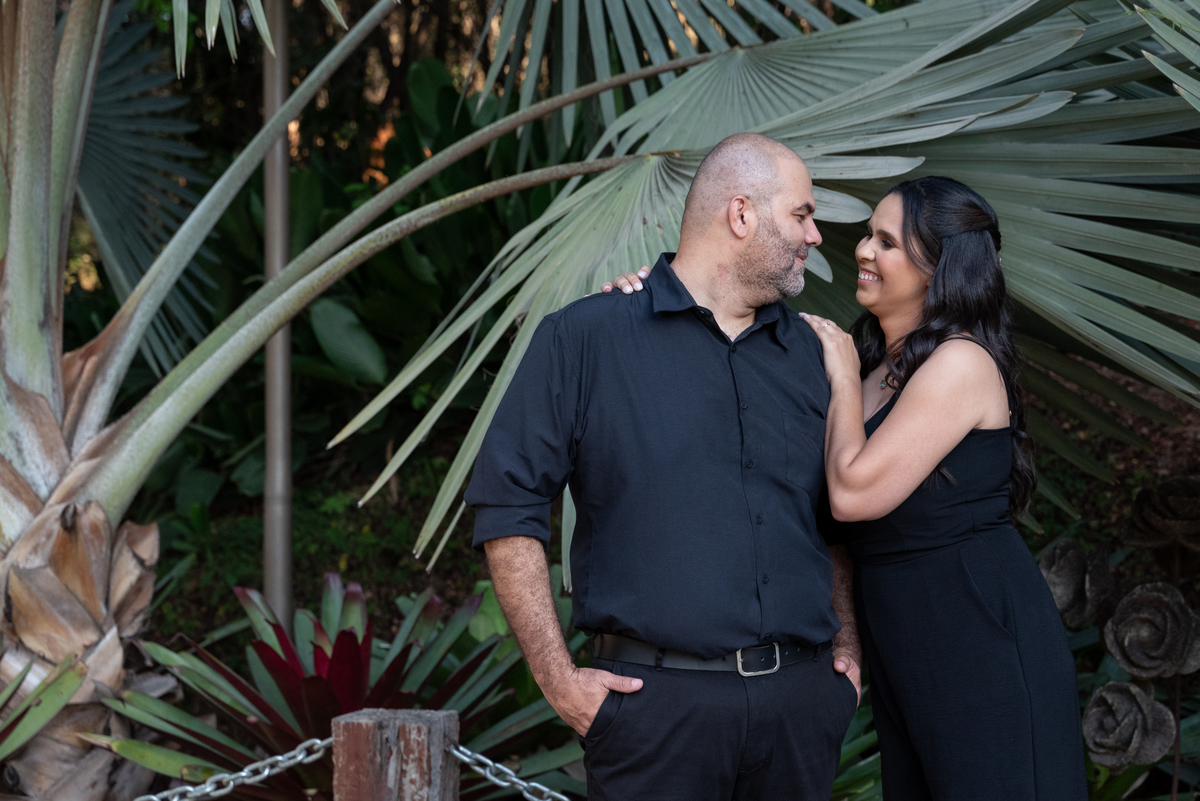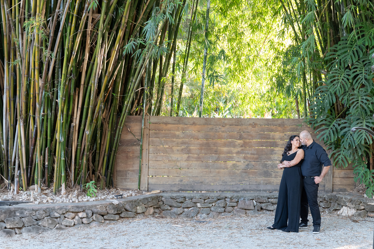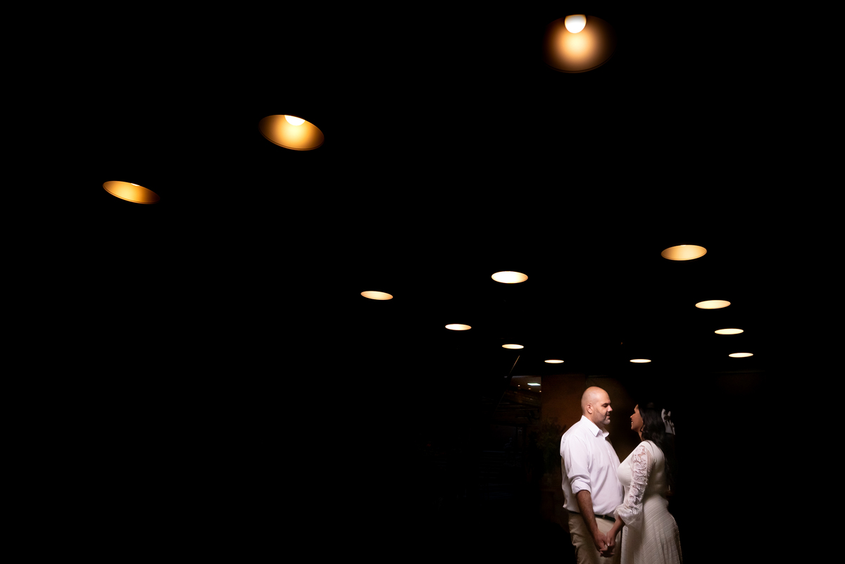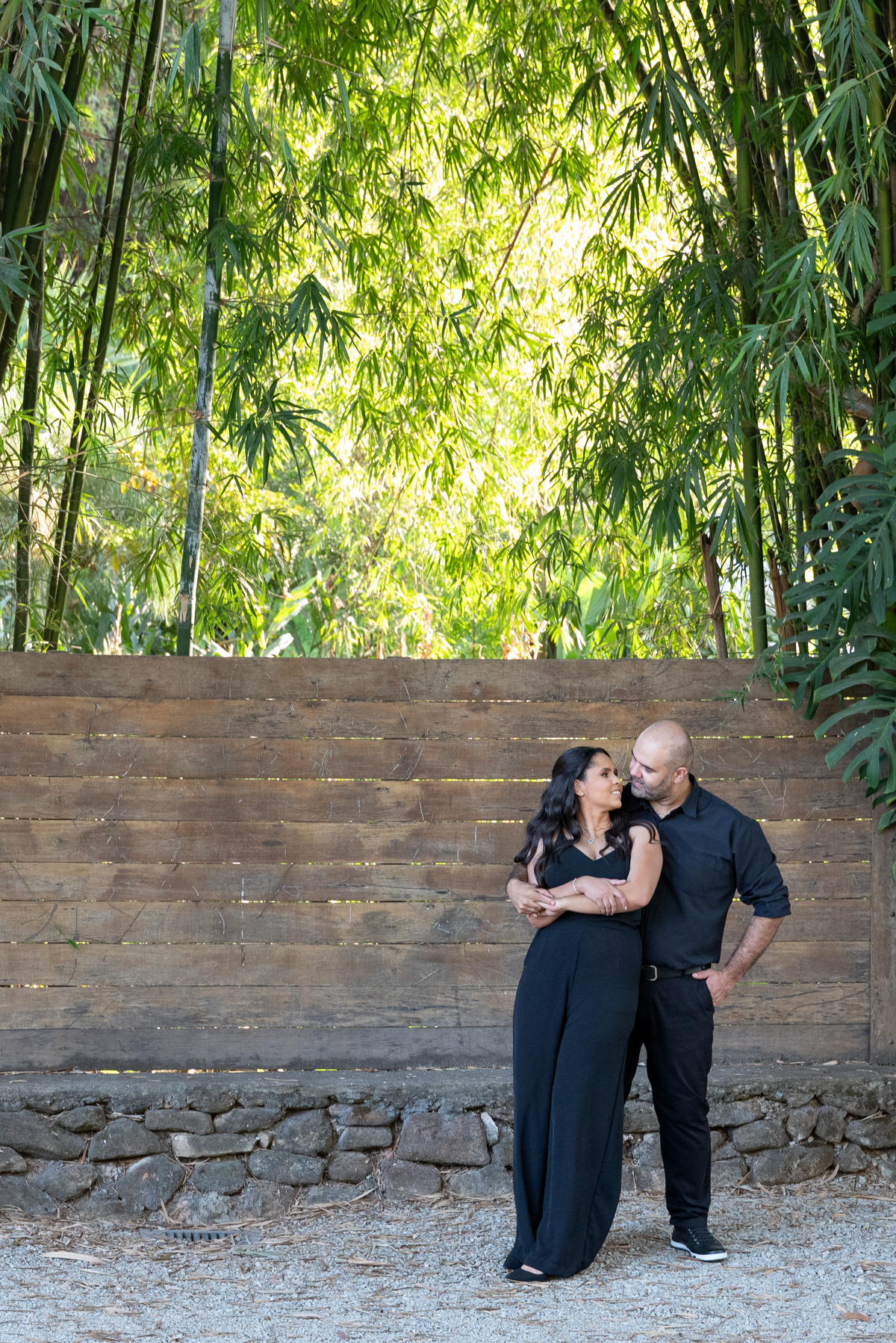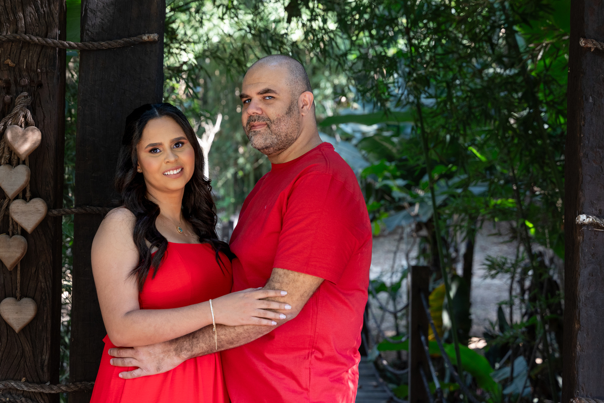 O ponto alto do ensaio foi ao pôr do sol. Com o céu azul Isabela e Bruno se posicionaram em frente ao lago do Espaço Sanctuarium, cujas águas refletiam as cores vibrantes do entardecer. Aproveitamos esse momento mágico para capturar imagens que mais pareciam pinturas, com o casal abraçado, trocando olhares apaixonados.