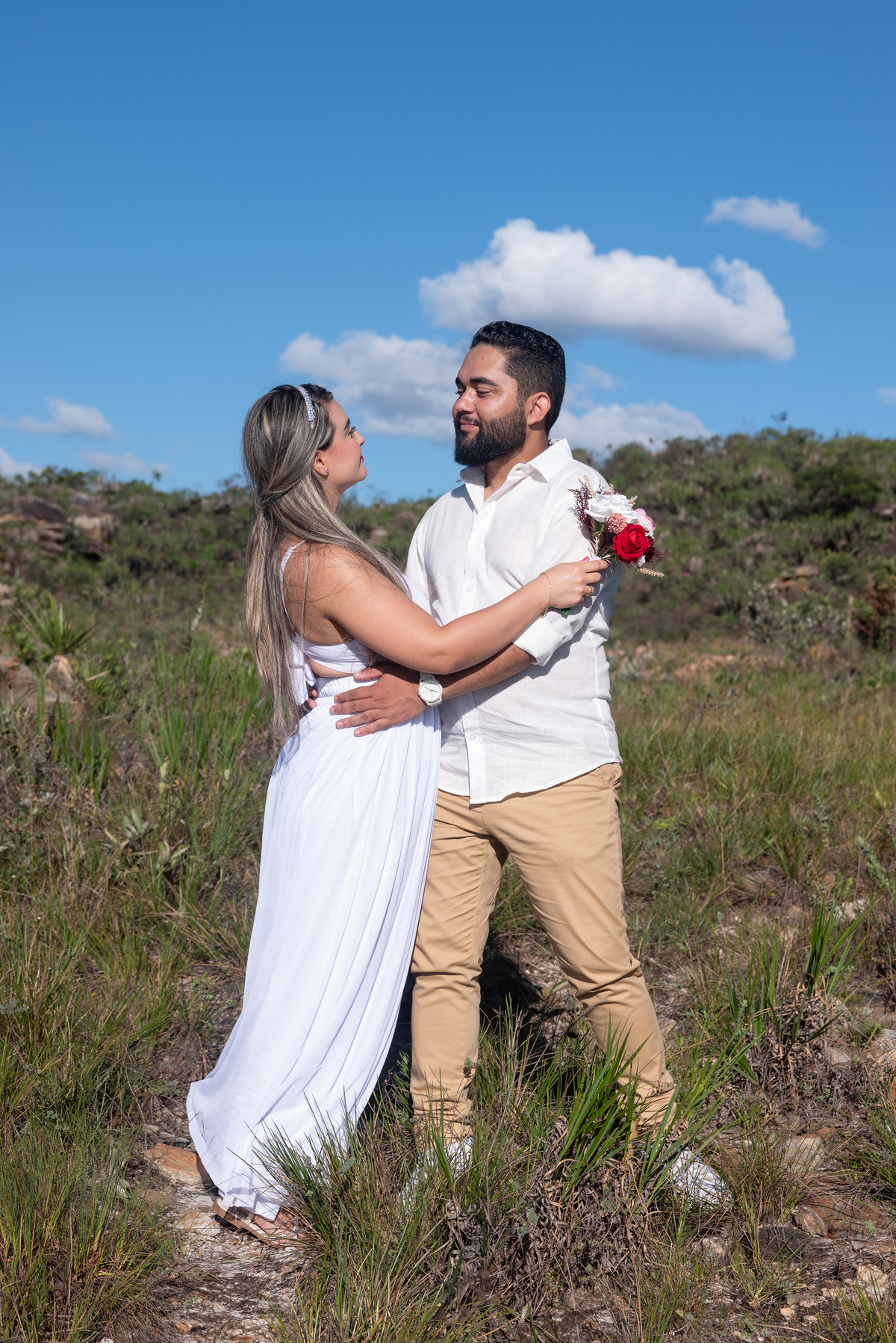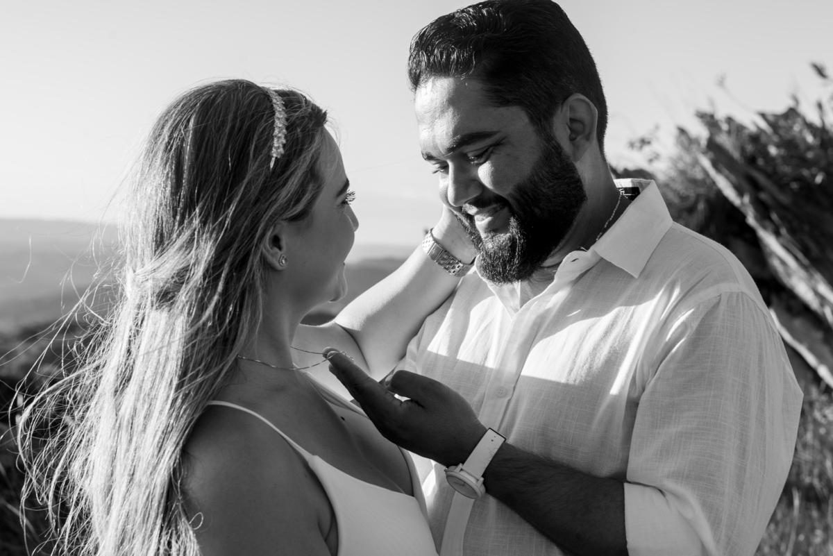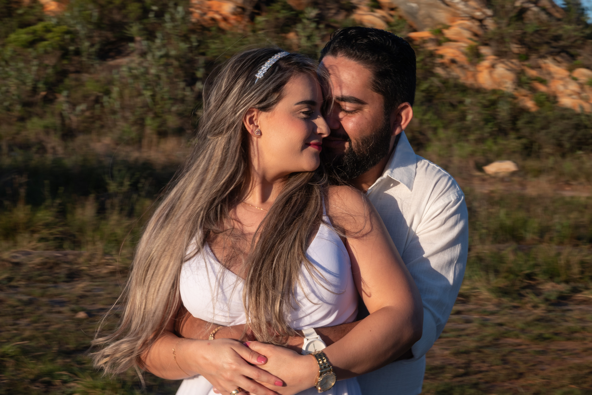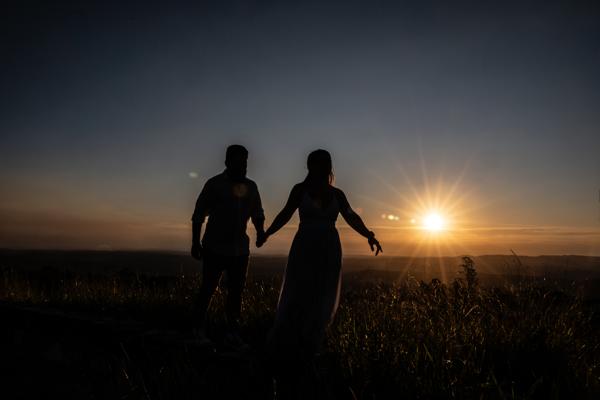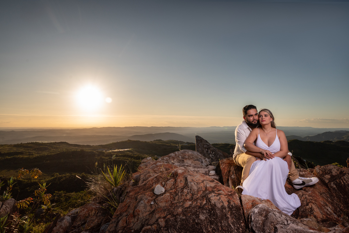 Entre trilhas, montanhas e uma paisagem que transmite paz, cada clique revelou a essência do casal: cumplicidade, carinho e muita felicidade. Mas o grande espetáculo veio ao final do dia, quando o sol começou a se despedir no horizonte, tingindo o céu com tons dourados e alaranjados. O pôr do sol deslumbrante não só completou o cenário, como também trouxe um toque mágico para as fotos, tornando cada imagem ainda mais especial.