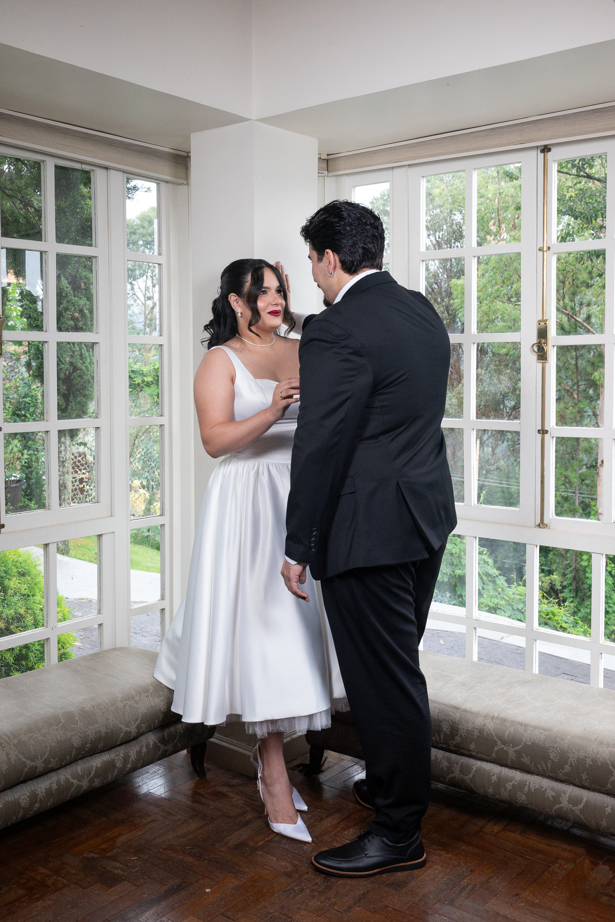 A Casa Cenarium, localizada em Nova Lima, é um dos cenários mais desejados para ensaios fotográficos em Minas Gerais. Seus ambientes elegantes, luz natural suave e estética acolhedora proporcionam o cenário ideal para fotografias autorais, românticas e cheias de significado. Foi nesse espaço que Camila e Igor se entregaram ao momento, permitindo registros espontâneos, naturais e cheios de emoção.