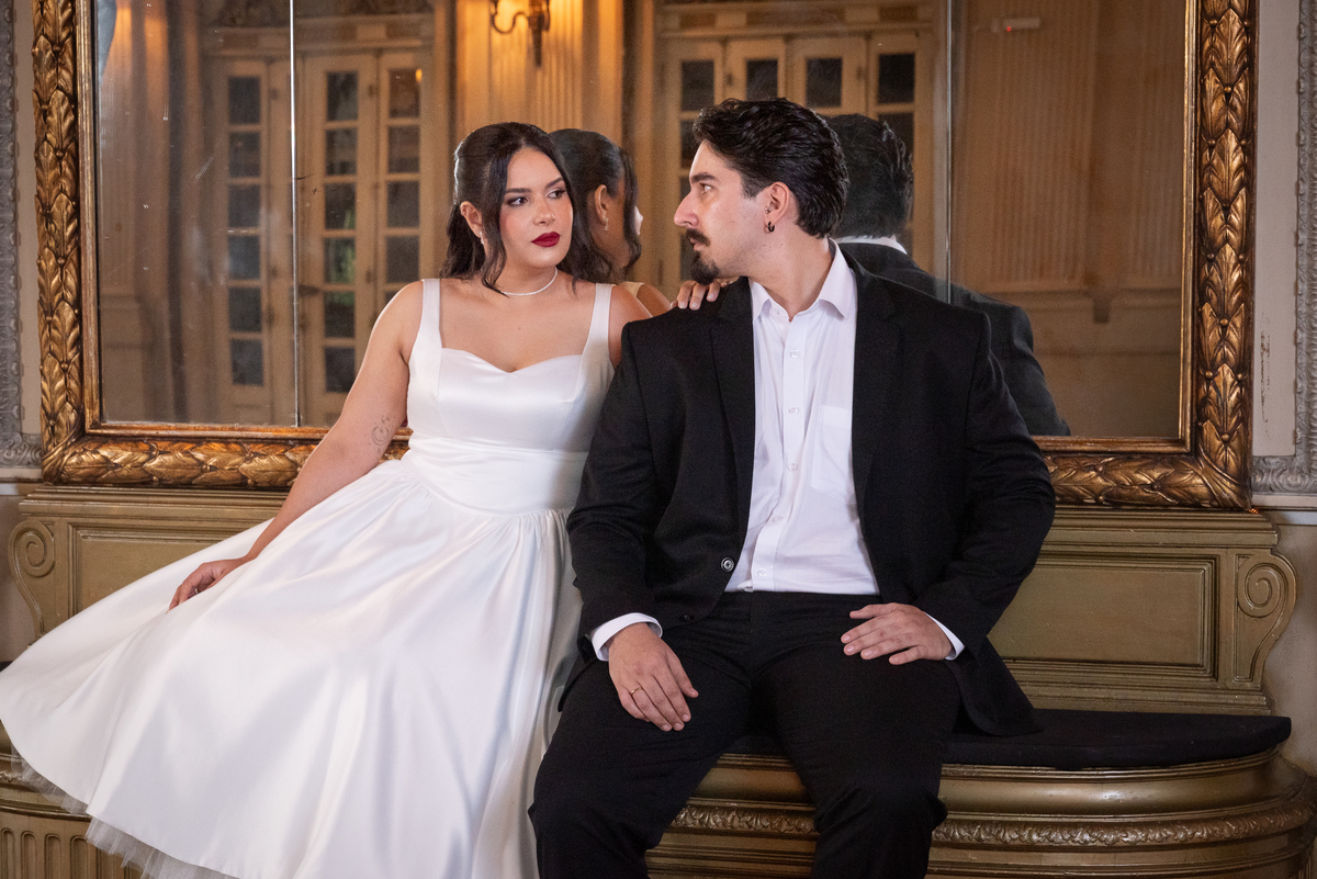 O ensaio de Camila e Igor no Automóvel Clube de Belo Horizonte, em Minas Gerais, foi marcado por elegância, intensidade e um forte conceito visual. Um dos espaços mais icônicos da capital mineira serviu como cenário perfeito para um ensaio fotográfico autoral, onde arquitetura clássica, história e emoção se encontraram em cada imagem.